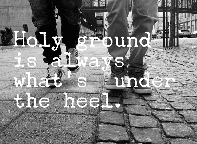Jesus’ death on the cross made it possible to encounter God in the daily-ness and ordinariness of life. From now on we can find God’s glory, presence and purposes on the altar of the commonplace: Building a shed, washing the clothes, and preparing the meals. Wiping up spilled milk becomes a sacred act. When we begin to live in such a way all lines between secular and holy vanish and we realize that life itself is holy. In other words, holy ground is always what’s under the heel.