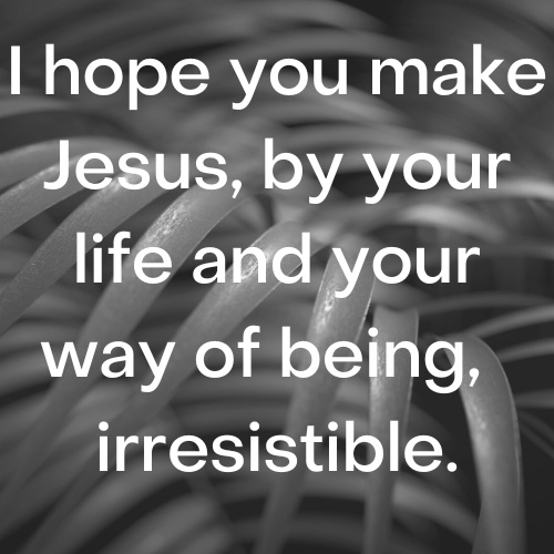 I hope you make Jesus, by your life and your way of being, so irresistible, that you offer an alternative Story to a skeptical culture, that invites them to see beyond their closed and temporal reality and touches on their human longing for something real, sacred, and beyond, and offers the possibility of making a holy connection with the same God who shapes and defines your life.